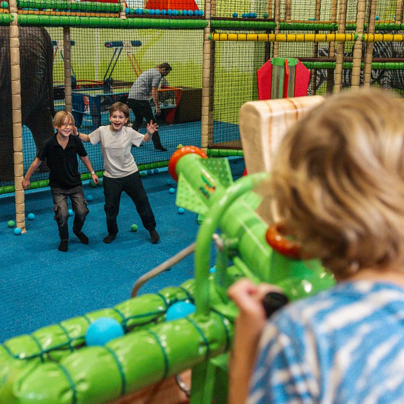 Toiminnantäyteinen maailma, jossa vanhemmat voivat huoletta seurata, pehmeiden pallojen lentelyä turvallisessa ympäristössä.