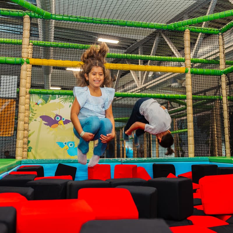 Haasta kaverit, kuka pääsee radan ympäri nopeimmin? Leiki ettei saa koskea lattiaa – täällä vain mielikuvitus asettaa rajat uusille haasteille. Hyppyjen, loikkien ja nopeiden liikkeiden avulla voit päästää irti ja antaa seikkailun viedä mukanaan jännityksen ja ilon täyteiselle leikille.