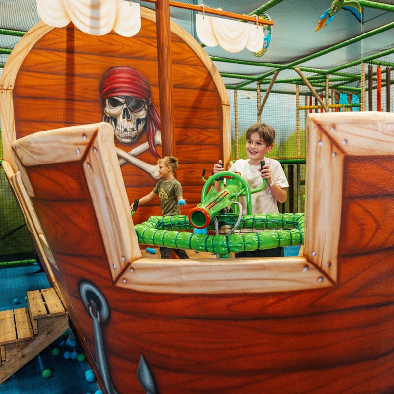 Merirosvolaiva purjehtii seitsemällä merellä ja sen kannella voi taistella pallotykeillä – pienillä kanuunoilla, jotka ampuvat pehmeitä palloja paineilman avulla. Merirosvolaiva sopii kaikenikäisille. Olitpa sitten rohkea kapteeni tai vasta-alkaja matruusi, laivassa voit kokea hauskoja seikkailuja.