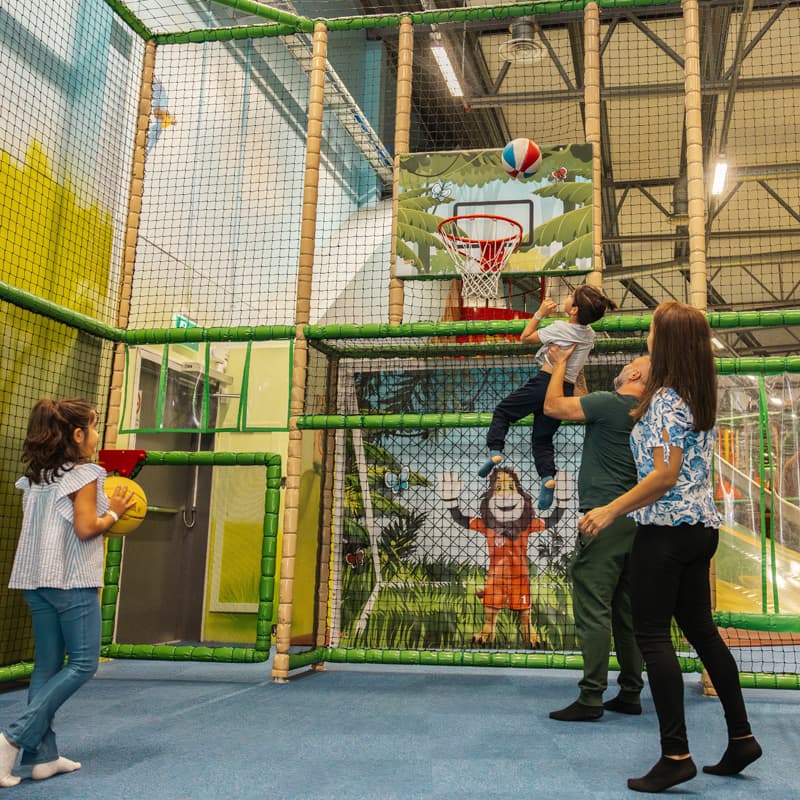 Haasta kaverit ja kokeile eri urheilulajeja Leo’s Urheiluareenalla! Tässä leikkimaan erillisessä alueessa voit osallistua pallopeleihin ja kokeilla lajeja, kuten jalkapalloa, koripalloa ja salibandyä.