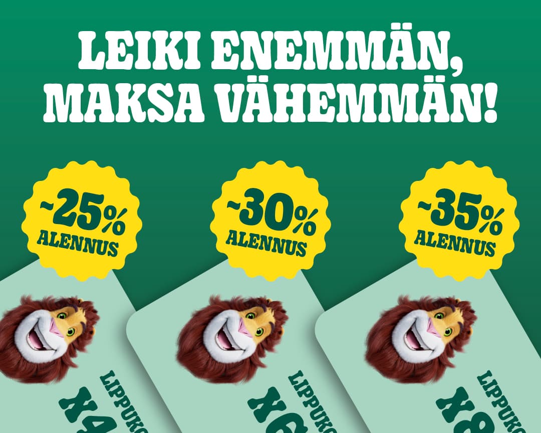 Osta lippukortti ja säästä jopa 35 %. Mitä enemmän leikit, sitä edullisemmaksi se tulee!