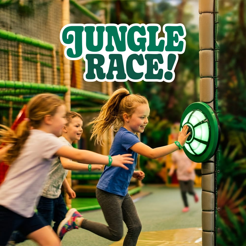 Uusi Jungle Race on hengästyttävän hauska seikkailukisa koko synttäriporukalle! Ranneke joka tassuun ja vimmatulla vauhdilla viidakkoon etsimään värirasteja. Mitä enemmän niitä löytyy, sitä enemmän kertyy pisteitä. Ja jännäksi pelin tekee myös se, että pelaajien pistetilannetta voi seurata tulostaululta. Kun peliaika päättyy, jokainen saa pienen yllätyksen! Jungle Race -seikkailukisa löytyy tällä hetkellä 9 puistosta.