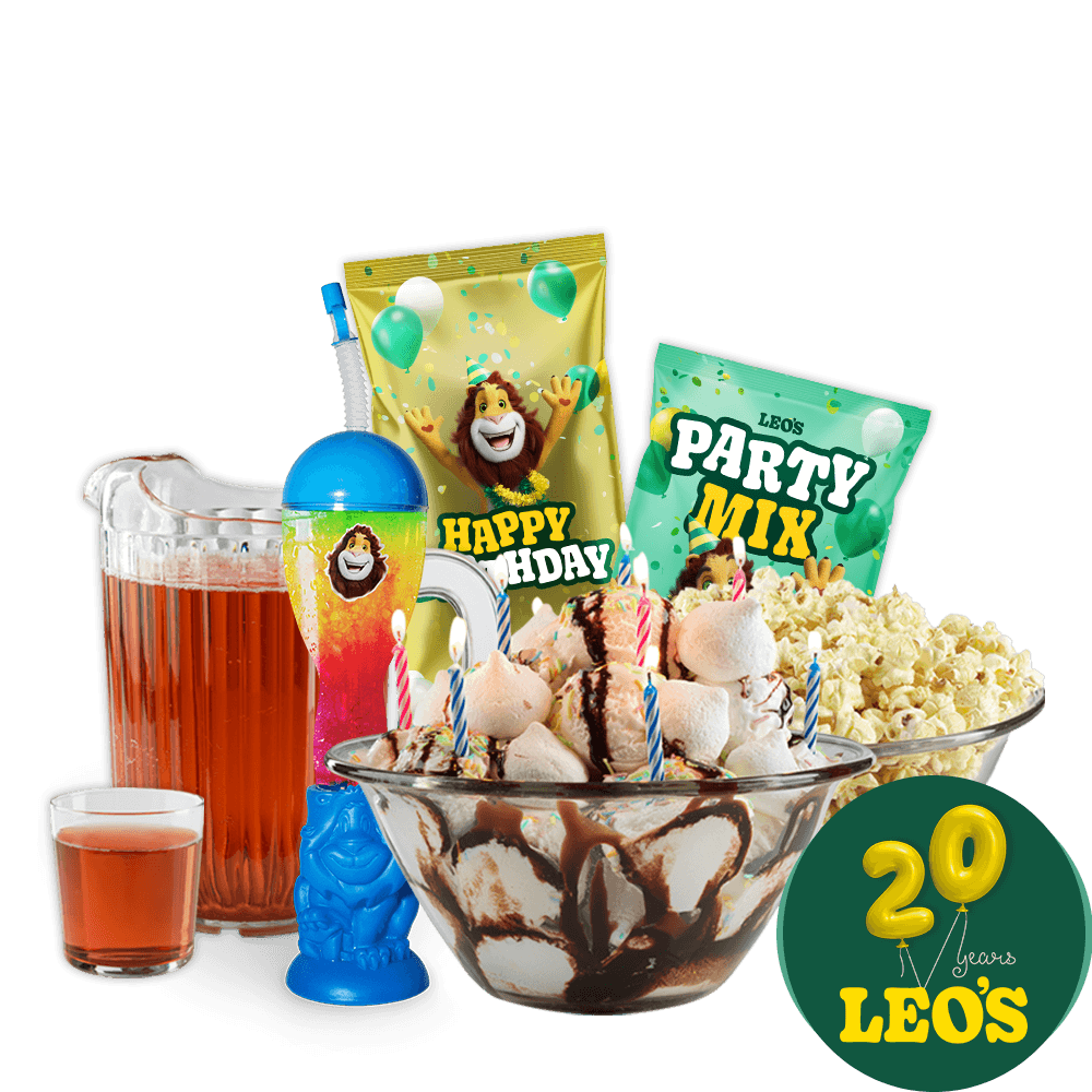 Juhlat, josta jää muistot! Paitsi mieleen myös tassuun. Sillä kuules tätä: Hauskan juhlahumuilun keskellä sankari ja vieraat saavat ikiomaksi Leon Slush-mukit ja niihin jäätävän hyvät jäähilejuomat, cool! Siis tietysti kaiken muun tarjoilun, seikkailun ja riemuilun lisäksi!