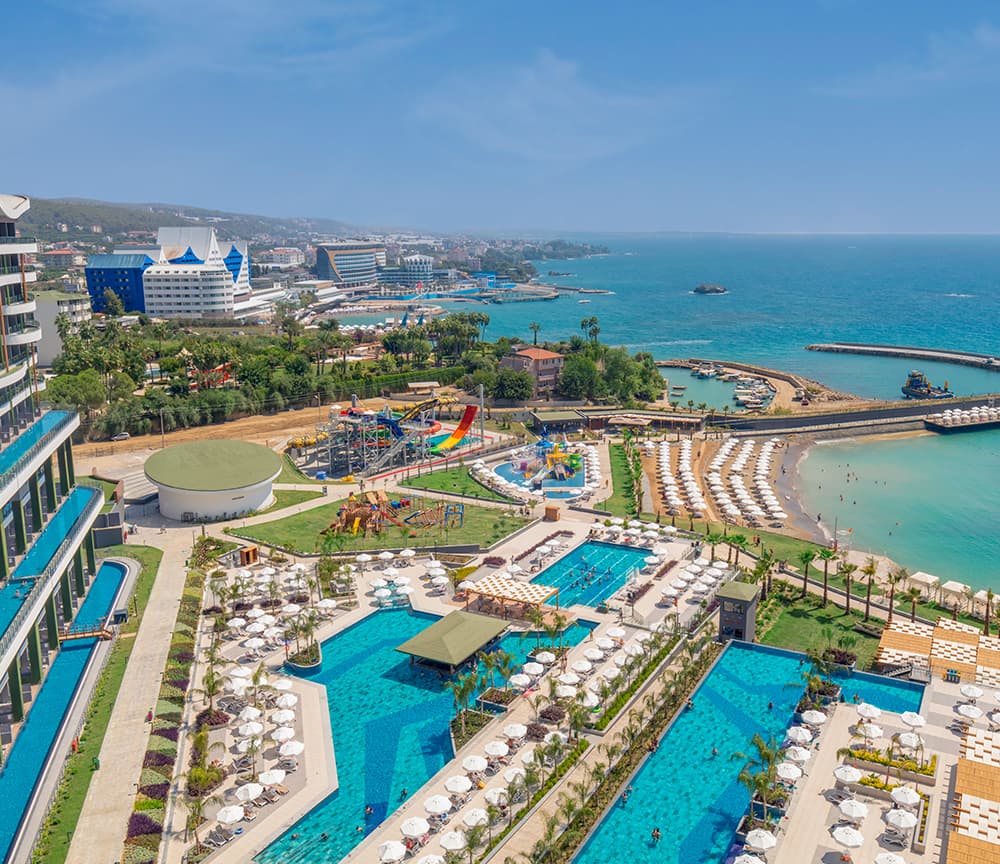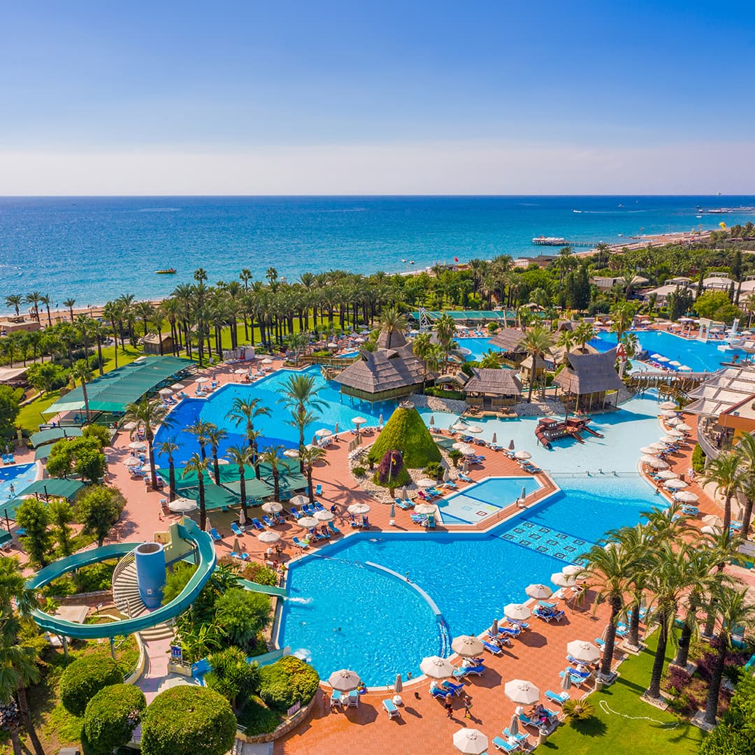 Pegasos World tarjoaa suuren All Inclusive -valikoiman, Välimeren suurimman uima-altaan, suuren vesipuiston ja Nazarin oman lastenkerhon.