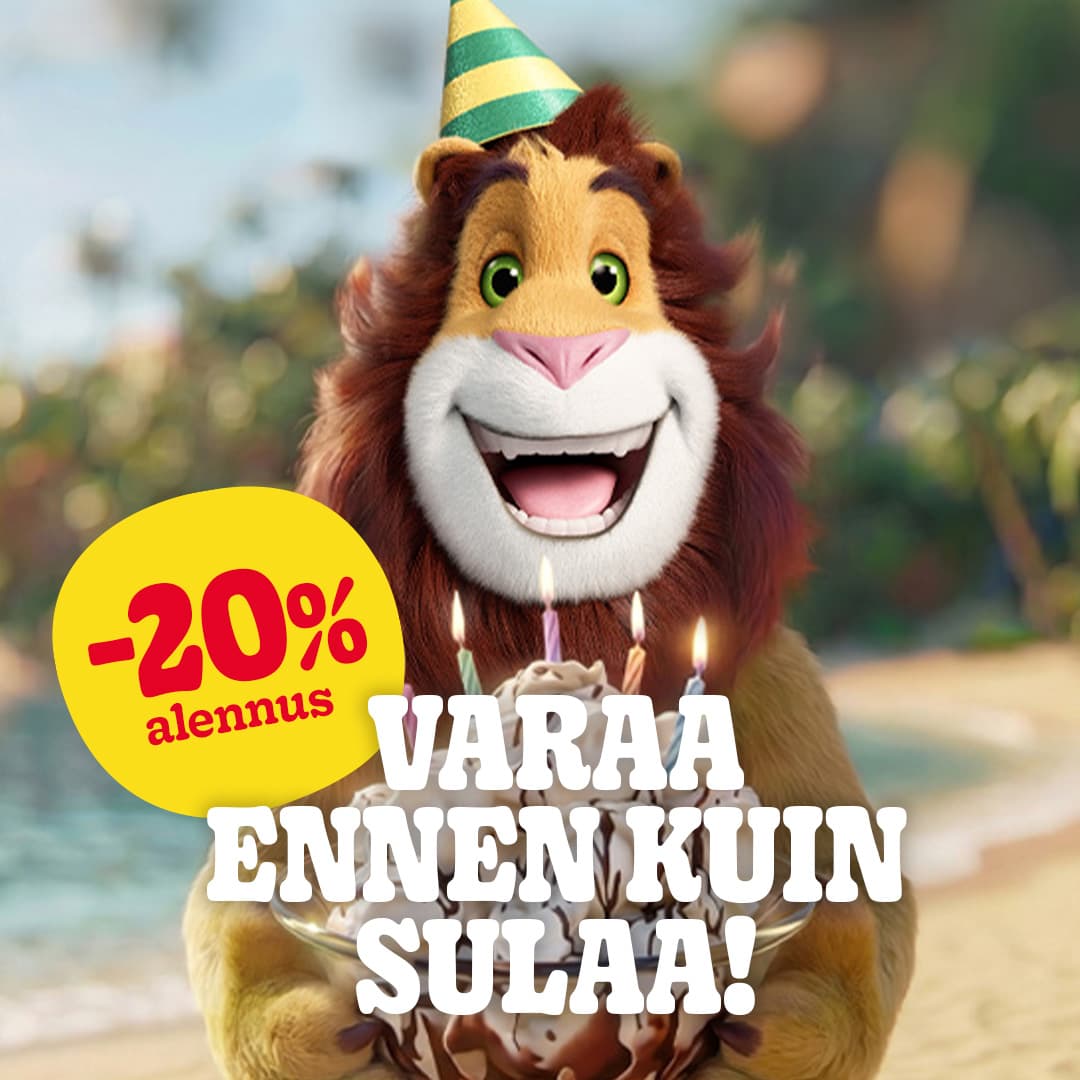 Leo tarjoilee kavereilleen Unelmasynttärit jädepallokakulla -20 %. Varaa, ennen kuin sulaa, sillä nyt on cool paketti: oma teemahuone, herkkutarjoilu ja koko seikkailuviidakko! Synttärietu on voimassa 31.5.2026 asti ja juhlat juhlitaan sitten kun synttäripäivä koittaa!